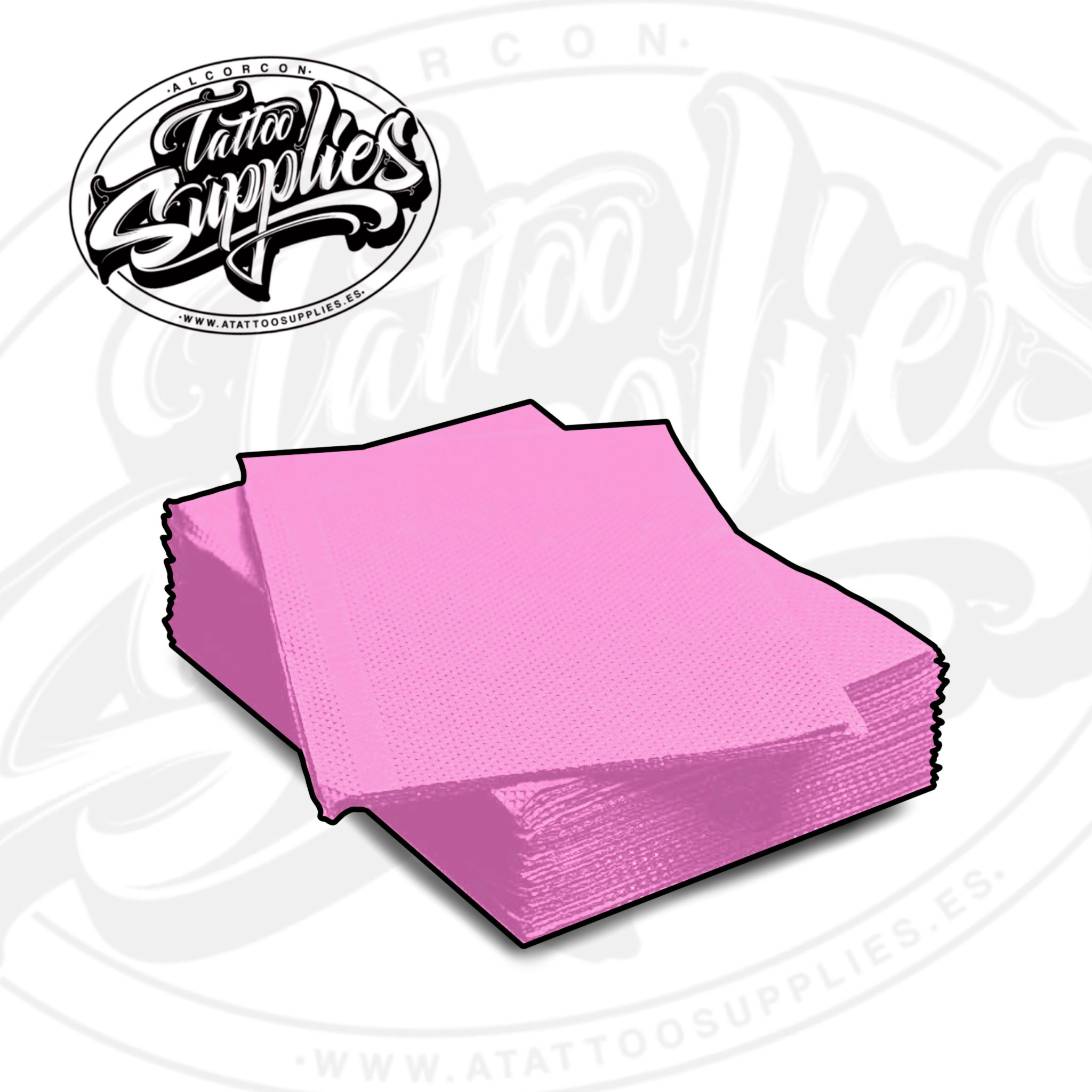 Campos quirúrgicos rosas, con un lado absorbente y el otro impermeable.