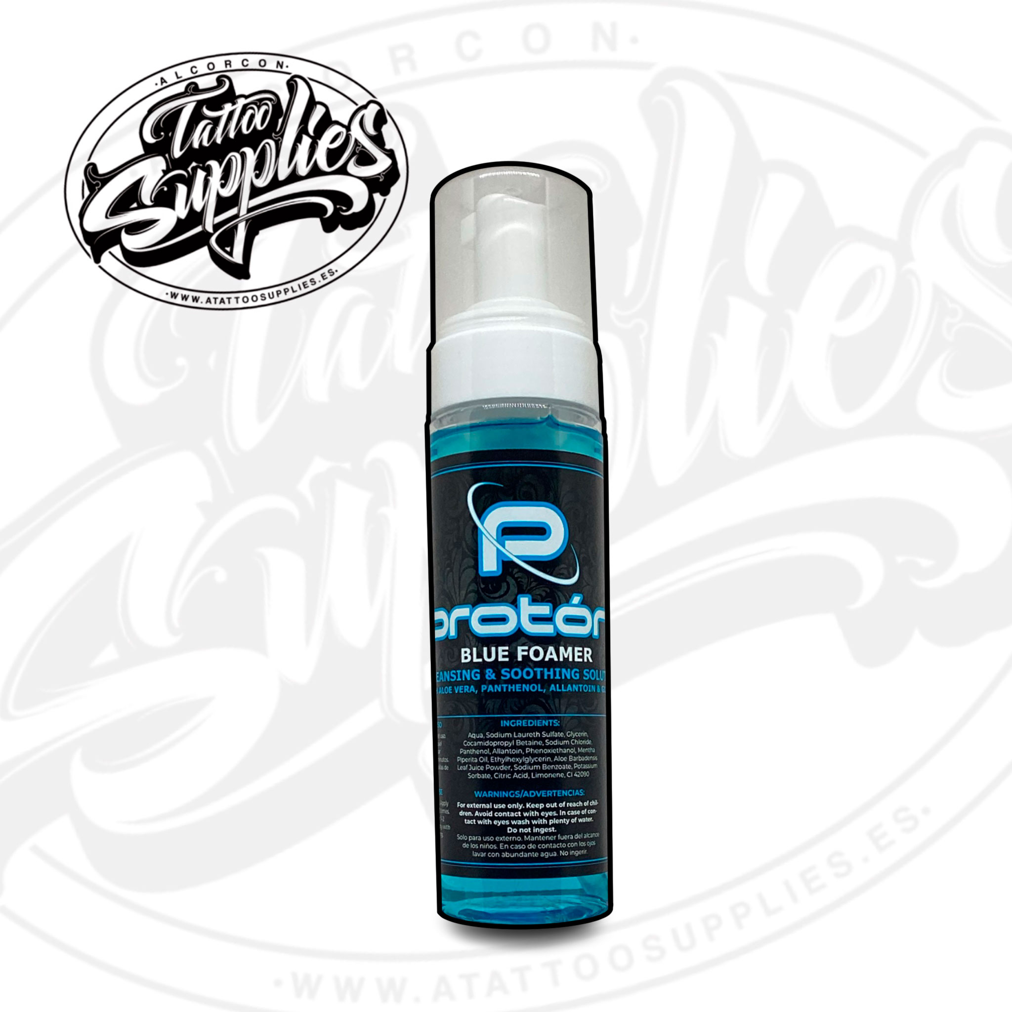 Foamer Protón. Ha sido testado por los mejores artistas internacionales quedándose sorprendidos por sus resultados. Es Vegano 100% y fabricado en España. Con lo que garantizamos que te ofrecemos el mejor producto para limpiar y calmar la piel mientras se realiza el tatuaje.