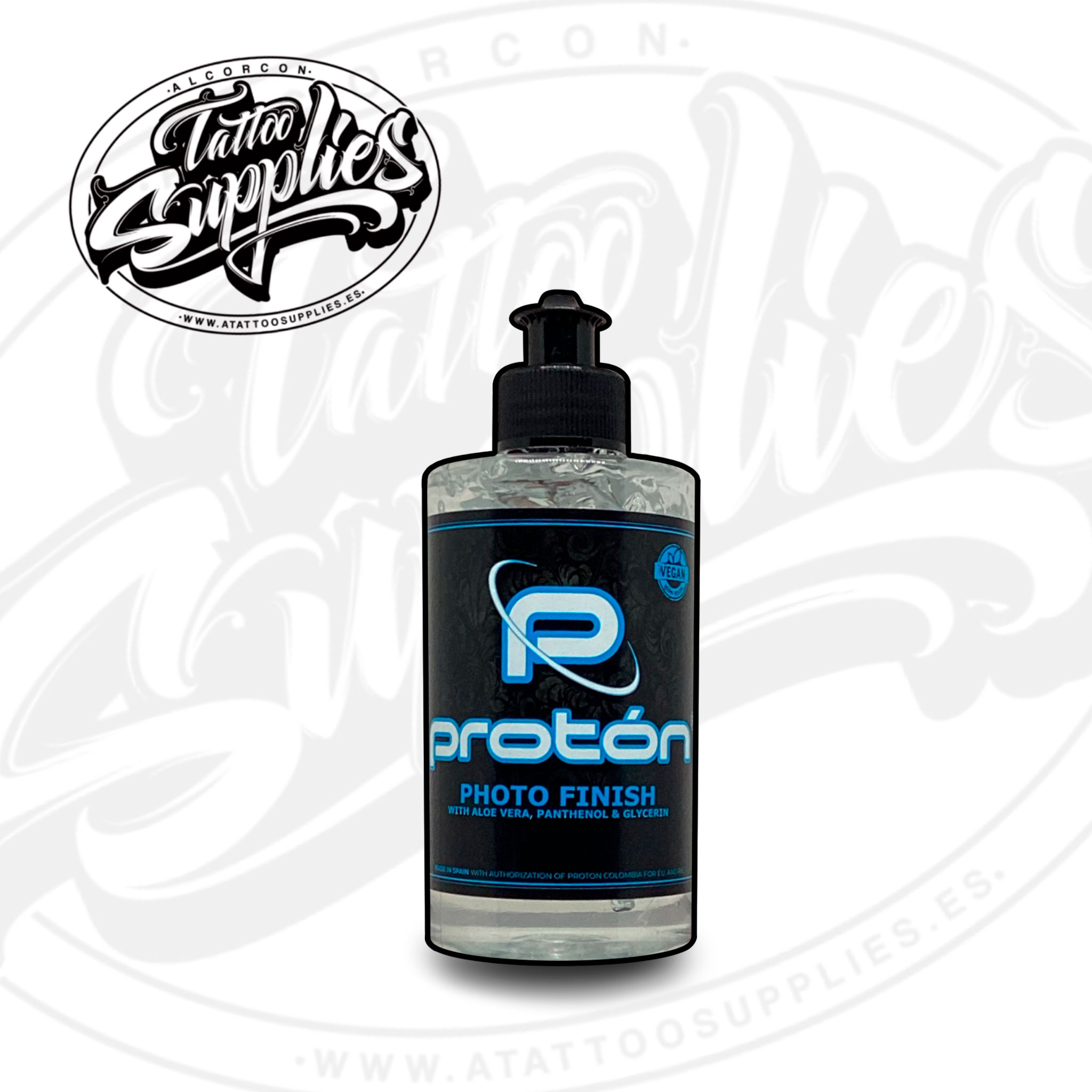 Photo Finish Proton es la formula original y creada por Proton, con Aloe Vera, Glicerina y Pantenol, que aplicándolo al terminar el tatuaje, reduce el sangrado, baja la rojez y permite unas fotos excepcionales.