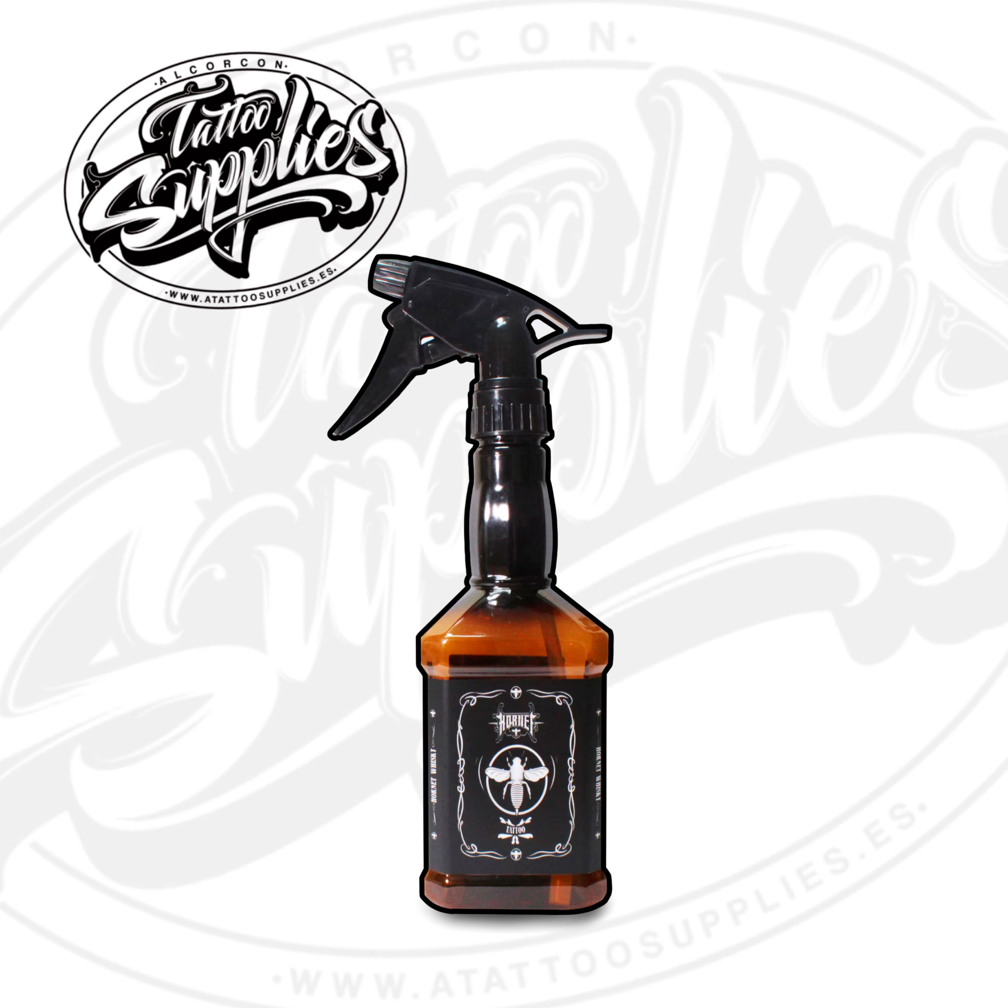 Spray pulverizador 550 ml, de diseño cómodo y estable, debido a que el agua queda en la parte inferior, lo que lo hace más estable y cómo para ponerlo en la mesa de tatuar, en el carrito..